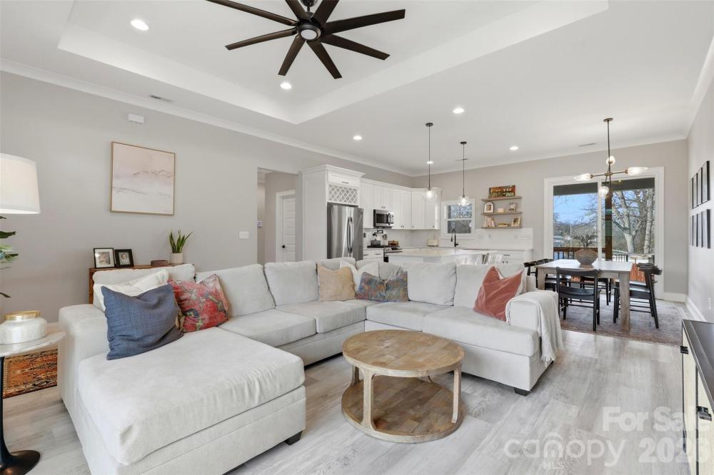Less than a mile from the heart of Downtown Belmont, this thoughtfully designed home combines modern style with an easy, functional layout. The open floor plan is perfect for everyday living and entertaining, centered around a beautiful kitchen with custom cabinetry, an oversized island, and plenty of storage. Tray ceilings, stylish finishes, and modern fixtures add character throughout the main living space. The primary suite offers a relaxing retreat with a spacious walk-in closet, soaking tub, and beautifully tiled shower. Step outside to a covered rear porch overlooking the fenced backyard—an ideal space to unwind or host friends. The finished two-car garage with epoxy floors adds extra flexibility for storage, hobbies, or a workout space. Enjoy the rare opportunity to live so close to the restaurants, breweries, shops, and charm of Downtown Belmont. You don't want to miss this one!