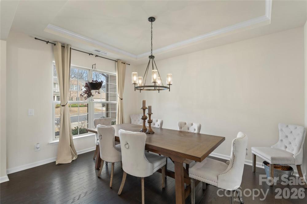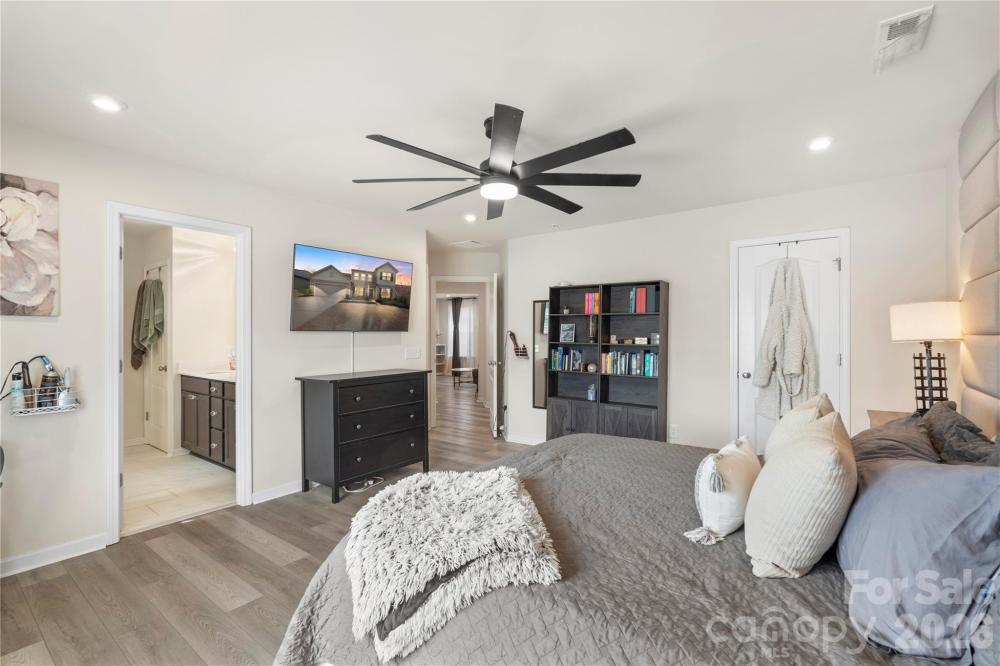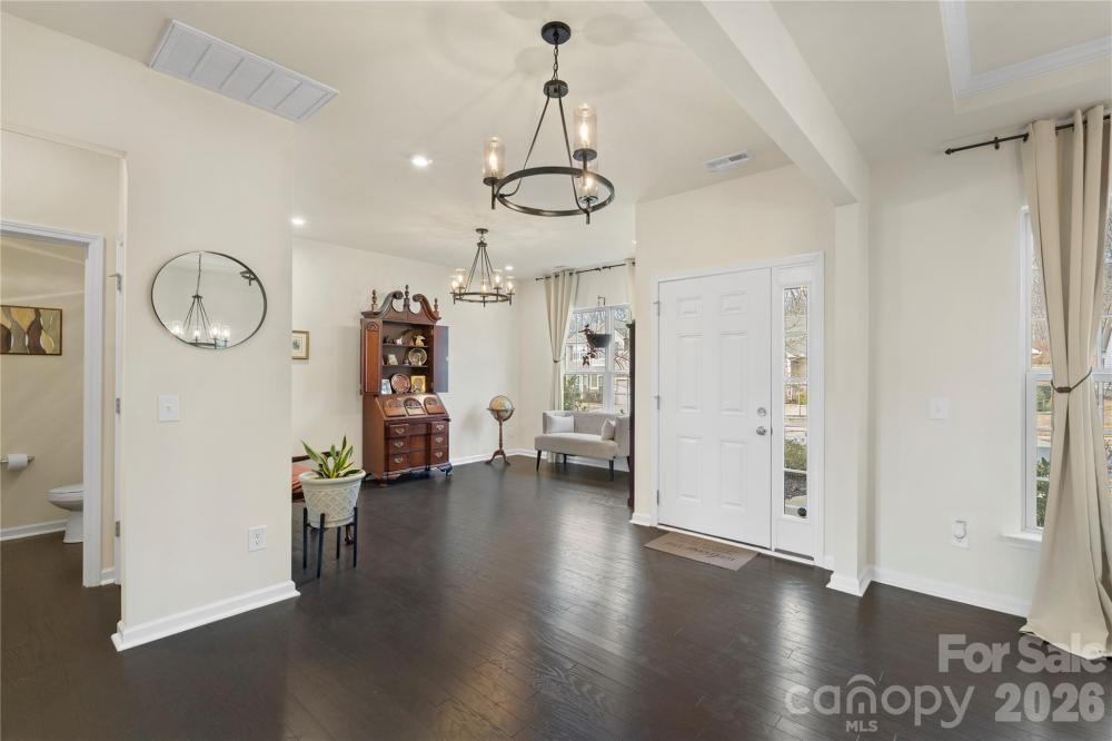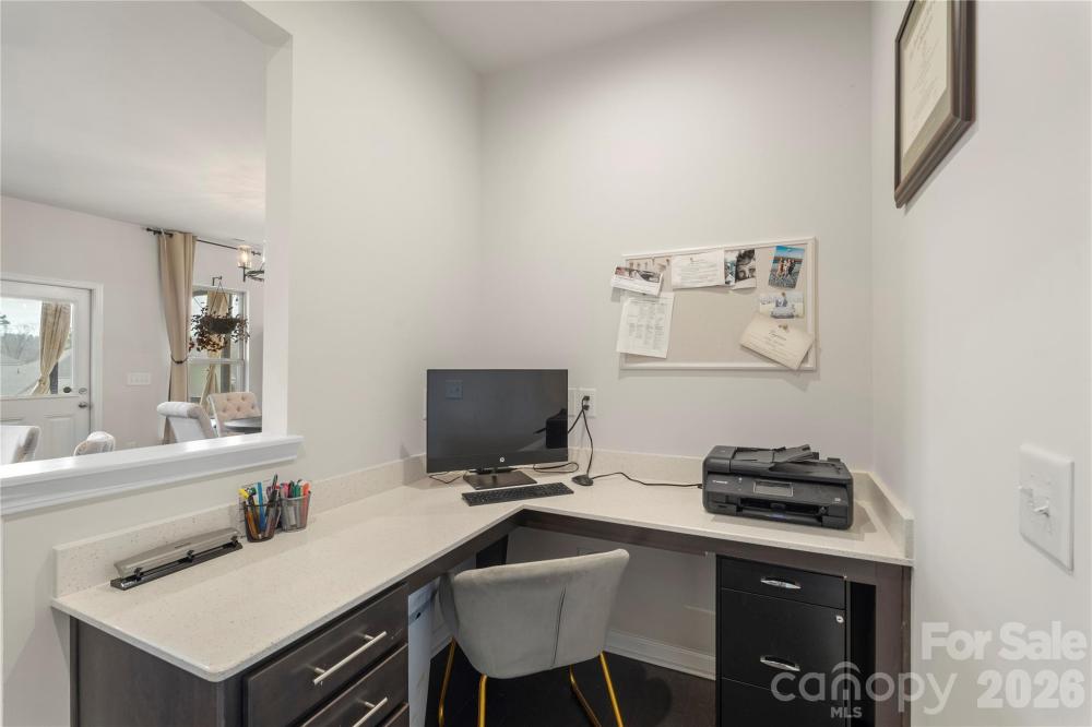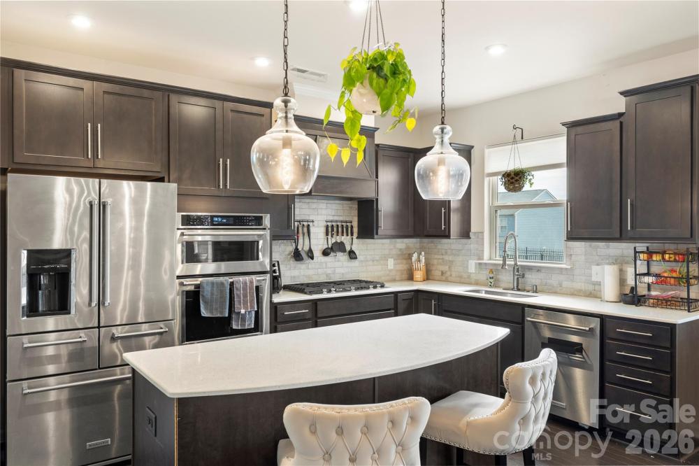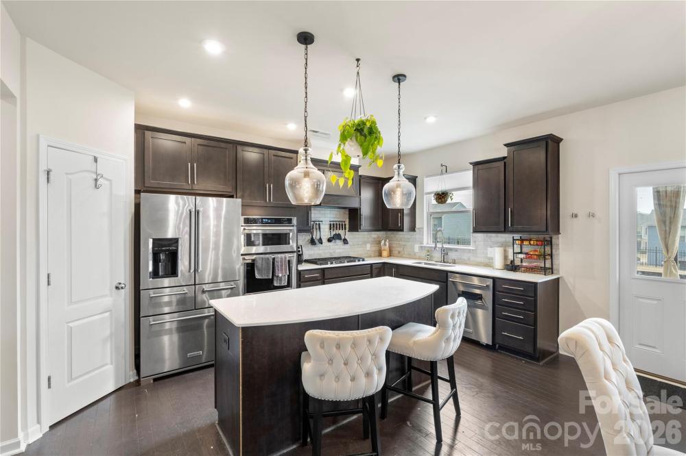 This charming and well maintained home in the desirable Queensbridge community provides a versatile and livable floor plan for all your needs! Offering 4 Bedroom, 2.5 bathrooms this home boasts hardwood flooring throughout the main level, neutral paint throughout and durable vinyl plank flooring on the upper level. You will fall in love with the open feeling of the main level complete with a Den/Sitting Room, dedicated office space, separate dining room but that is not all! The living room is filled with natural light from the oversized windows and is completed with a gas fireplace, making it the perfect spot for any season. It flows seamlessly into the breakfast area and updated kitchen with matching SS appliances, gas range, quartz counters, an eat-at island, tile backsplash, wet bar/coffee station, and dedicated pantry. On the upper level, enjoy the large loft which offers a very usable space for entertainment, hobbies, or another work area! The Primary Suite offers two walk-in closets, dual vanity and a tile surround shower. The secondary bedrooms are all very generously sized and provide their own walk-in closet as well providing ample storage, and even more versatile space! Great location with shopping, restaurants and entertainment all near by. Now is the perfect time to get into the growing Indian Land area!