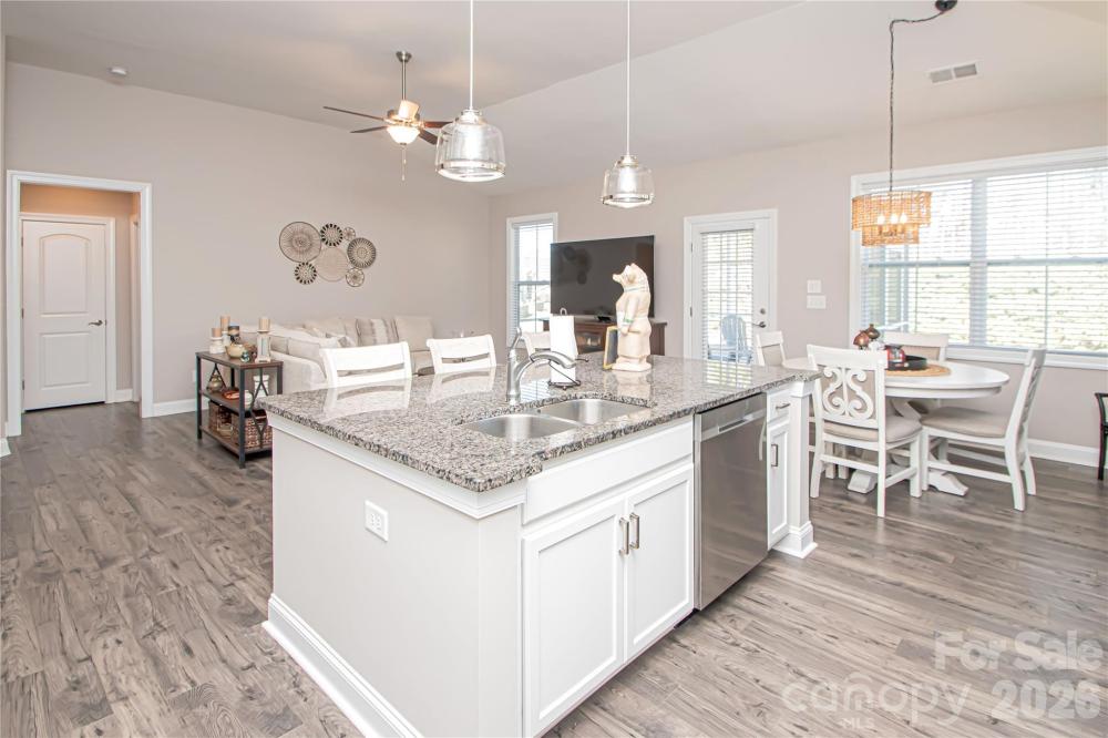 GRAB THIS ONE BEFORE SOMEONE ELSE DOES! Opportunity awaits to be the new owner of this lovely "like new" ranch style home located in a PRIME LOCATION within the desirable Heritage South 55+ Active Adult community in Indian Trail, NC. MOVE-IN-READY and waiting for you! Built in 2020, the home is situated on a 0.22 acre prime lot backing up to the community common area filled with trees and shrubs along the rear property line. Home features 1783 sq. ft. with two delightful covered porches enhancing both front and back. Open floor plan with 2 bedrooms, 2 full baths, flex room with french doors, (for a home office, dining, TV or guest room) and upgraded neutral features including no carpeting throughout the house. Plenty of natural light, higher ceilings in the living area, breakfast area, large kitchen island with granite and upgraded white cabinets. Primary suite w/tray ceiling, large shower, dual vanity & generous size closet. This popular community offers carefree living, ranch style homes with 2 car garages and lawn maintenance included! Residents enjoy a 7,000 sq. ft. Amenity Center with Grand Hall, Kitchen, Pool, Outdoor entertaining, Fitness Center, Craft Room & Pickleball courts along with Clubs & Social Events. For those buyers who enjoy the outdoors, Heritage South was designed with plenty of sidewalks and a new walking trail to enjoy the Carolina blue skies as you stroll the neighborhood. Conveniently located close to shopping, restaurants, medical facilities, entertainment, financial institutions & the Atrium Health West Hospital which is located less than 5 miles away just off of Hwy 74 in Matthews. Take advantage of the value this home and community has to offer. SIMPLIFY AND ENJOY LIFE IN HERITAGE SOUTH! You will not be disappointed.