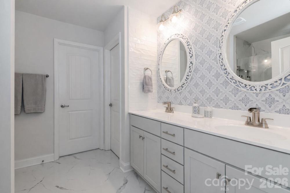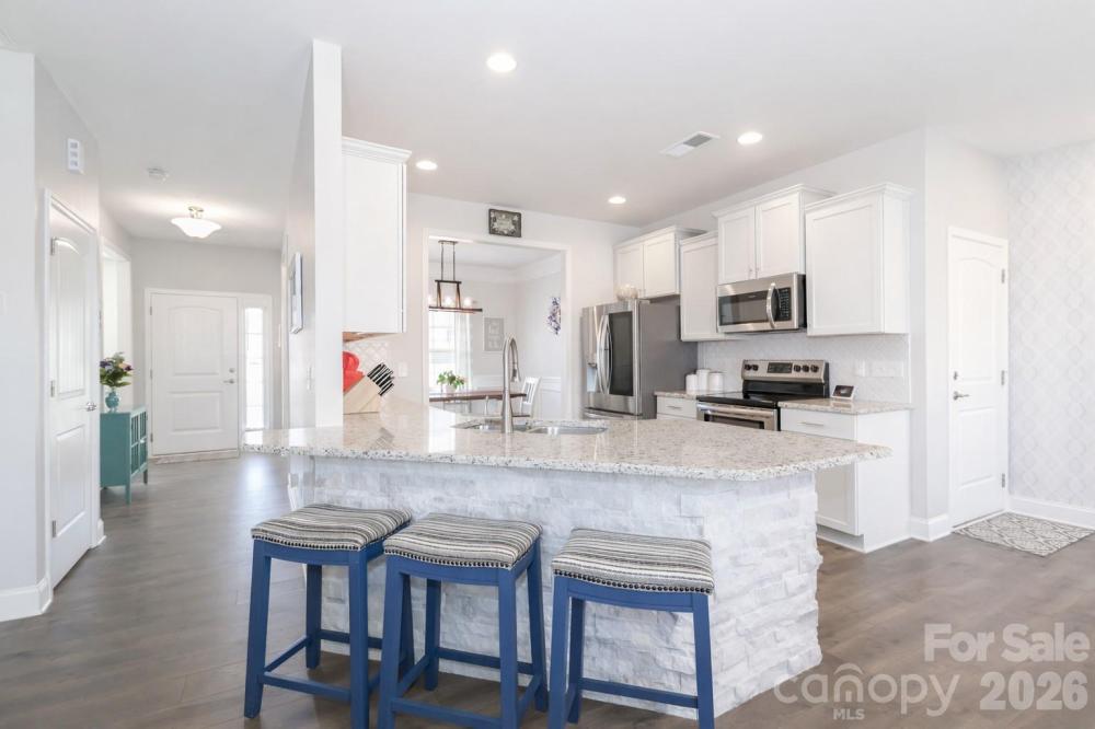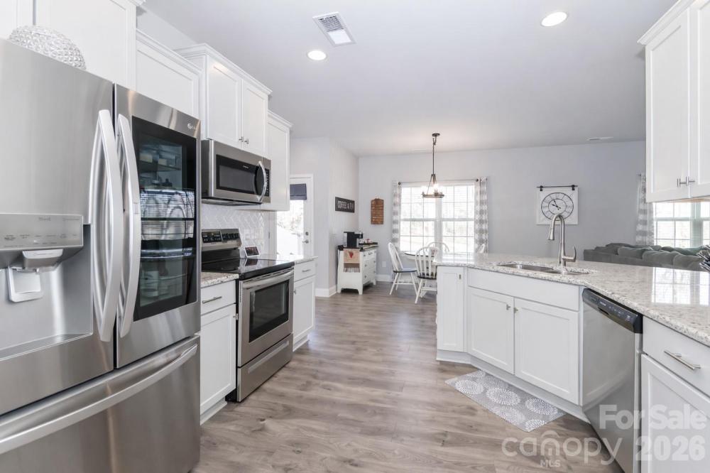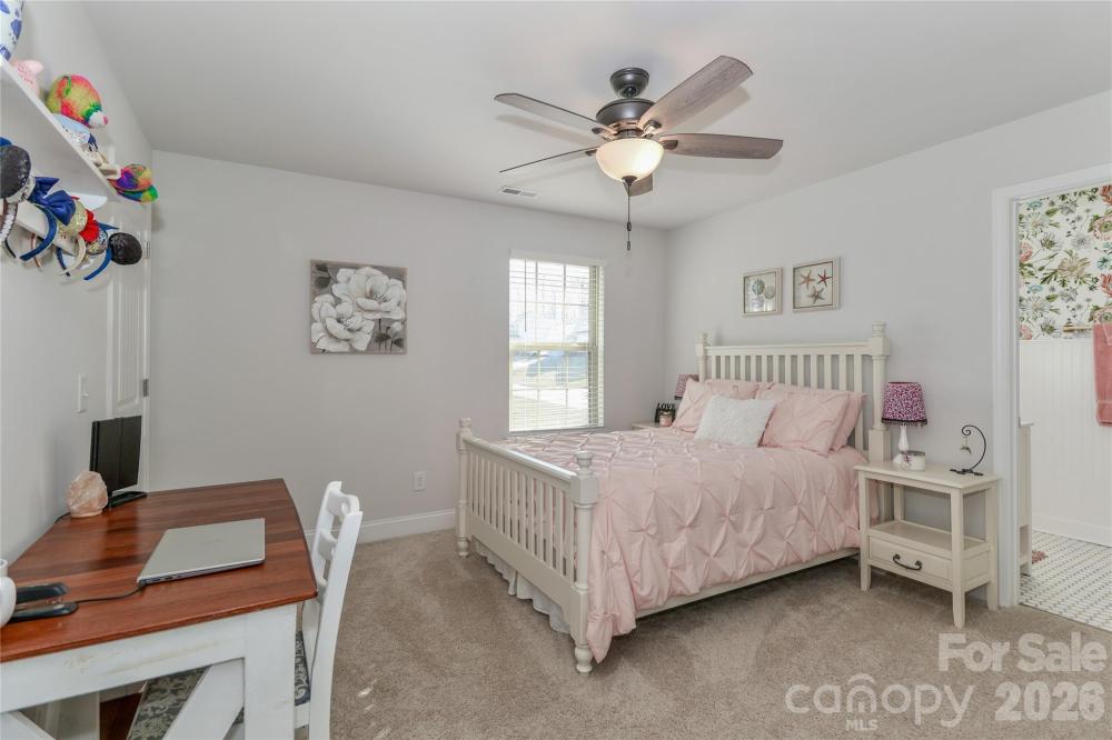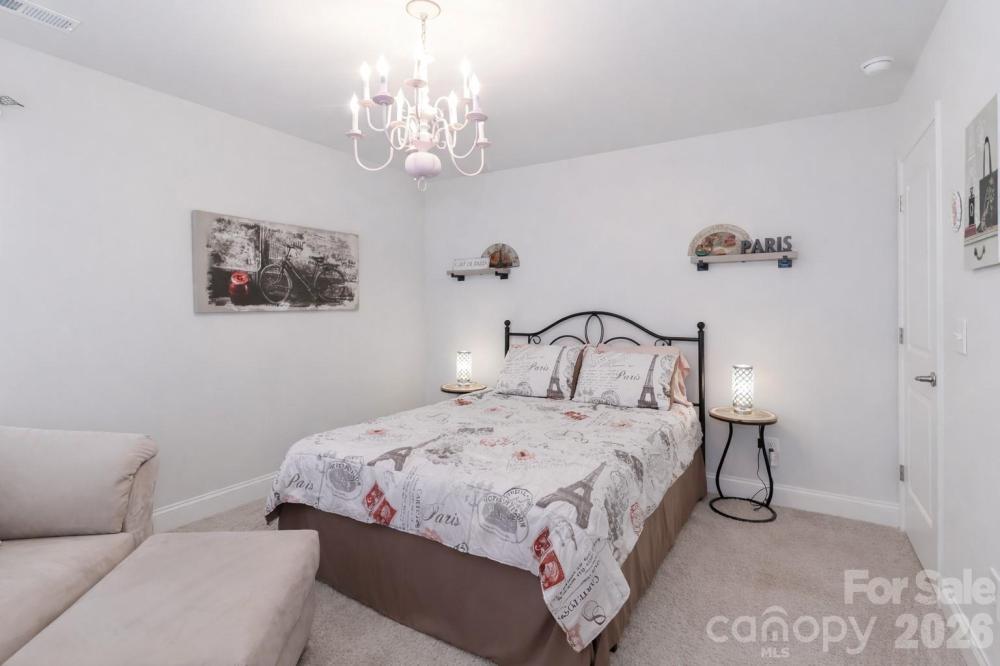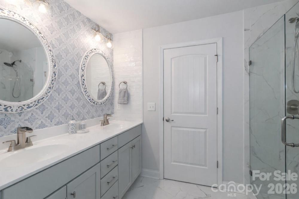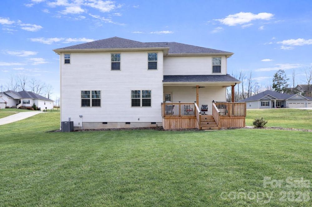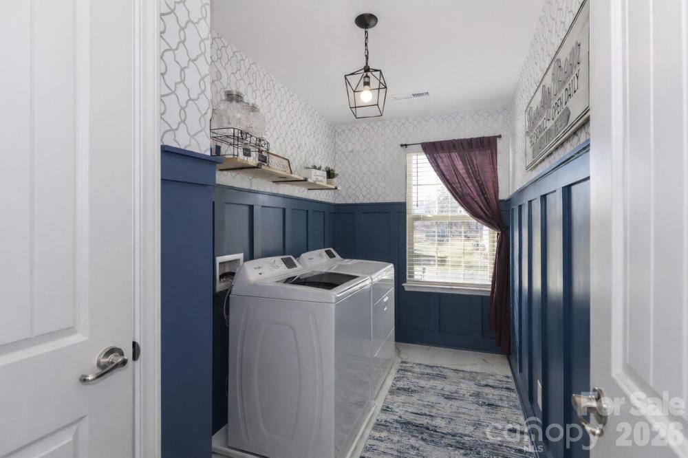 Built in 2020, this 4-bedroom, 3.5-bath home truly lives better than new, with approximately $40,000 in thoughtful upgrades completed after purchase. The interior has been extensively refreshed, including updated bathrooms with new tile flooring, sinks, fixtures, designer lighting, and fresh paint and/or wallpaper. The primary bath has been completely remodeled with a floor-to-ceiling tiled shower, upgraded fixtures, and a frameless glass door for a clean, modern finish. Nearly all light fixtures throughout the home have been replaced, adding a cohesive, updated feel. The kitchen features a decorative stone tile peninsula, an oversized walk-in pantry with solid shelving, and a stainless steel refrigerator that conveys. The garage stands out with epoxy flooring, an outdoor sink, and extended nook space for added functionality. The laundry room includes tile flooring and a feature wall, with additional accent walls in the laundry, primary bedroom and half bathroom. Outside, enjoy landscape lighting, irrigation, a French drain along the side of the property for added drainage, an extended deck with electrical outlet and ceiling fan, and a backyard outbuilding for extra storage. Located in a gated community with a 10-acre lake, pool, clubhouse, playground and walking trails the neighborhood is characterized by its wooded, quiet setting that offers a blend of nature and suburban convenience. Conveniently close to I-77 and I-40, as well as Iredell Memorial Hospital and Davis Regional Medical Center, the home also sits approximately 2 miles from the planned Weathers Creek High School, adding to its long-term appeal.