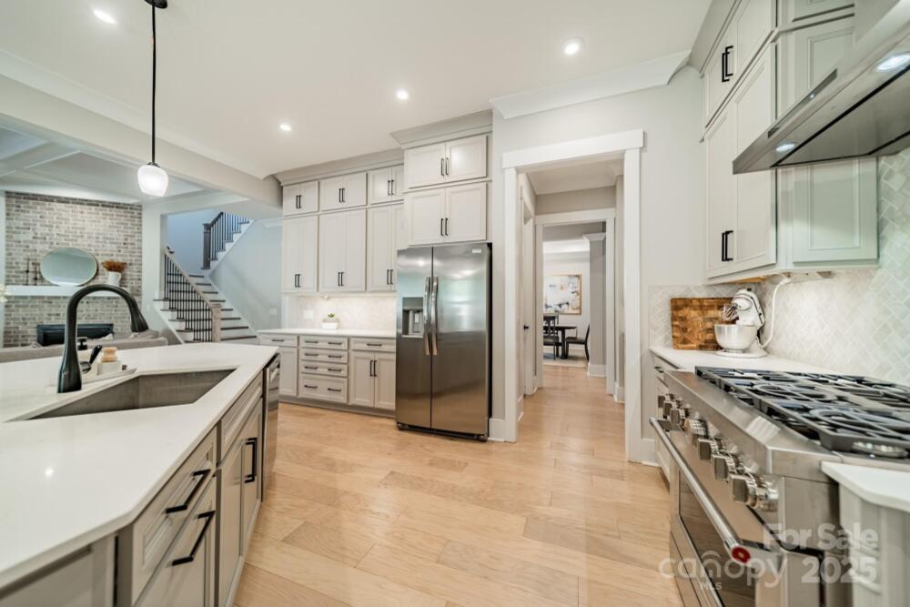 Looking for a magnificent 5 BR, 3.5 Bath modern home on over an acre surrounded by woods? Well look no further! This stunning & virtually brand new 2 story brick home w./ 3 car garage is situated on one of the largest lots in Cavesson (1.3 acres!) & is exactly what you’re looking for! The beautifully appointed chef’s dream kitchen features high-end appliances, quartz counters, designer tile backsplash, gas range, custom cabinets, butler’s/walk-in pantry, oversized island & flows seamlessly into an open floor plan ideal for entertaining. Main level primary suite offers a luxurious shower & garden tub w./ spacious walk-in closet & exquisite finishes. Covered back terrace & beautifully prefinished oak HW’s in living areas. Coffered ceiling in LR w/ fireplace sets a cozy tone. Spacious upstairs: 4 BR’s w/ 2 full baths, game/bonus, loft & media room! Located in the sought-after Weddington HS district. Close to shopping/dining & easy access to Providence Rd, 485 & Hwy 74. A rare gem!