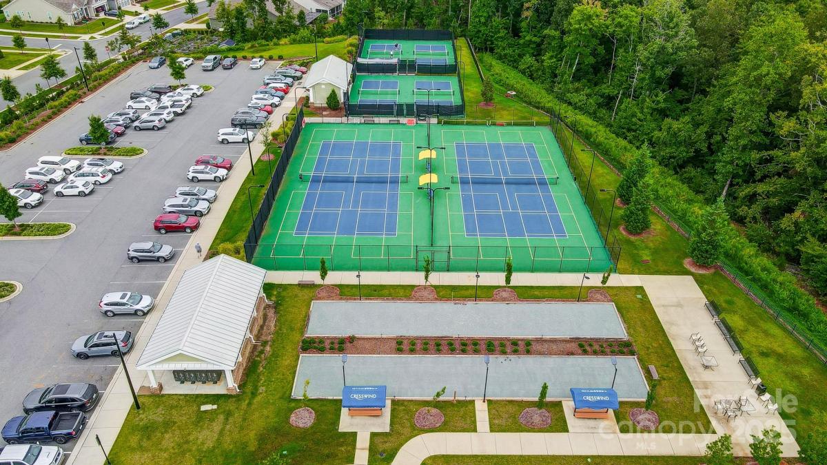 Lock and Leave lifestyle with this beautiful ranch home with maintenance-free living included! This home is located in a beautiful resort style amenity neighborhood! Luxury vinyl plank flooring flows throughout the entire home—NO carpet. The upgraded entertainers kitchen offers granite countertops, an island with built-in storage and roll-out trash, walk-in pantry, gas range, upgraded lighting, and a pass-through to the sunroom. A spacious dining area with a sleek linear fixture is ideal for hosting large family gatherings. The private primary suite features a tray ceiling, expansive L-shaped walk-in closet, dual vanities, and a zero-entry walk-in shower. A second bedroom is thoughtfully positioned away from the primary suite for added privacy with access to a full bath. The office includes French doors, built-in storage, and a Murphy bed for flexible use. Enjoy the extended sunroom—perfect for cards, puzzles, or relaxing—or step outside to the covered rear porch with privacy shade and paver patio. Additional highlights include an epoxy-coated garage floor and a laundry room with sink and cabinetry and a fenced yard. HOA includes lawn maintenance, basic cable, security system, lawn care, and amazing community amenities. There is a social director for those who want to join in on all the fun-completely optional! Conveniently located near the new Publix and Novant Medical Center/Hospital with direct neighborhood access to both and several new restaurants minutes away.