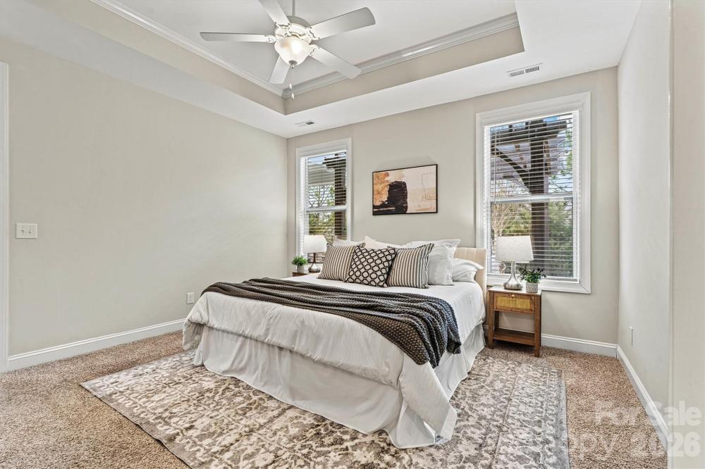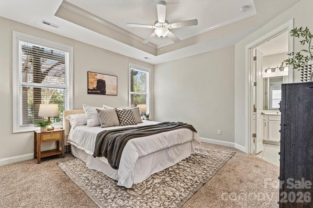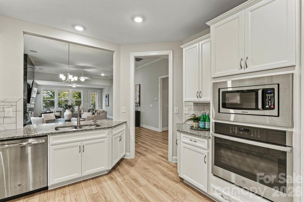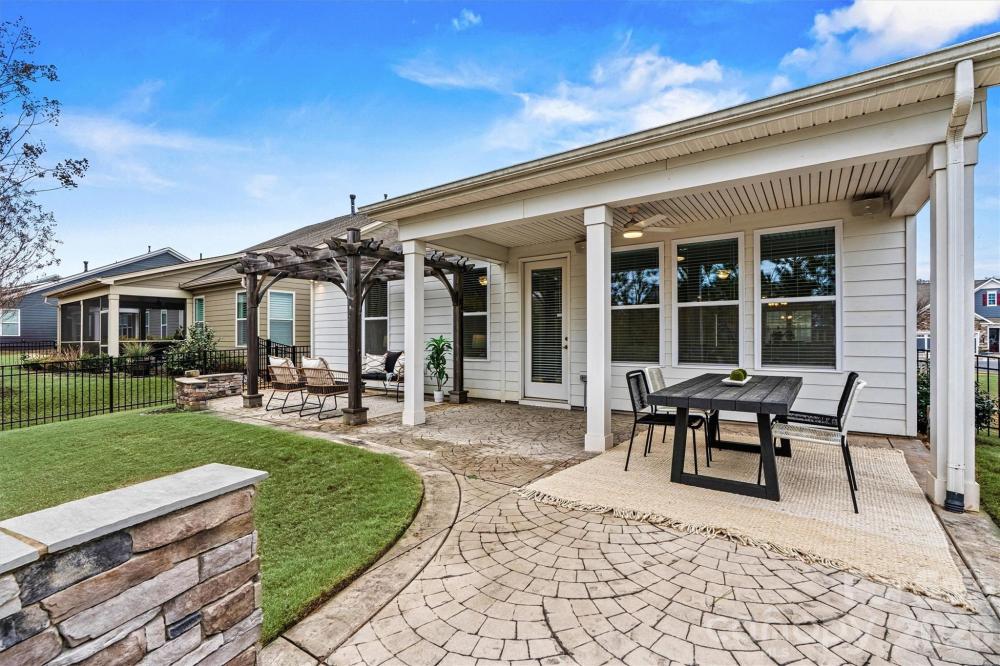There’s a new kid in town — and you’re going to want to see THIS ONE! This move-in ready 3BR/2BA Cypress Ranch is nestled in Charlotte’s premier Cresswind 55+ community and offers nearly 2,000 SF of beautifully designed living space. The Chef’s Kitchen shines with white cabinetry, granite countertops, gas cooktop, instant hot water dispenser, and a full stainless steel appliance package that CONVEYS. The spacious extended living area features a dramatic floor-to-ceiling electric fireplace and mounted TV, creating the perfect spot to gather and unwind. The Primary Suite with tray ceiling is a true retreat, complete with dual custom-shelved closets and a spa-style bath with double vanities, tiled walk-in shower, and heated bidet. Two additional bedrooms offer flexible space for guests, a home office, hobby room, or fitness area. Enjoy outdoor living on the covered rear porch with ceiling fan, custom pergola, stamped concrete patio, and gas stub for grilling or a cozy firepit. Additional highlights include a WHOLE-HOUSE water filtration system, OVERSIZED garage with epoxy flooring and upgraded lighting - all on a quiet cul-de-sac location. Comfort, convenience, and charm come together beautifully in this vibrant, amenity-rich community. Come see why this home is the perfect place to begin YOUR next chapter - schedule your showing today!
