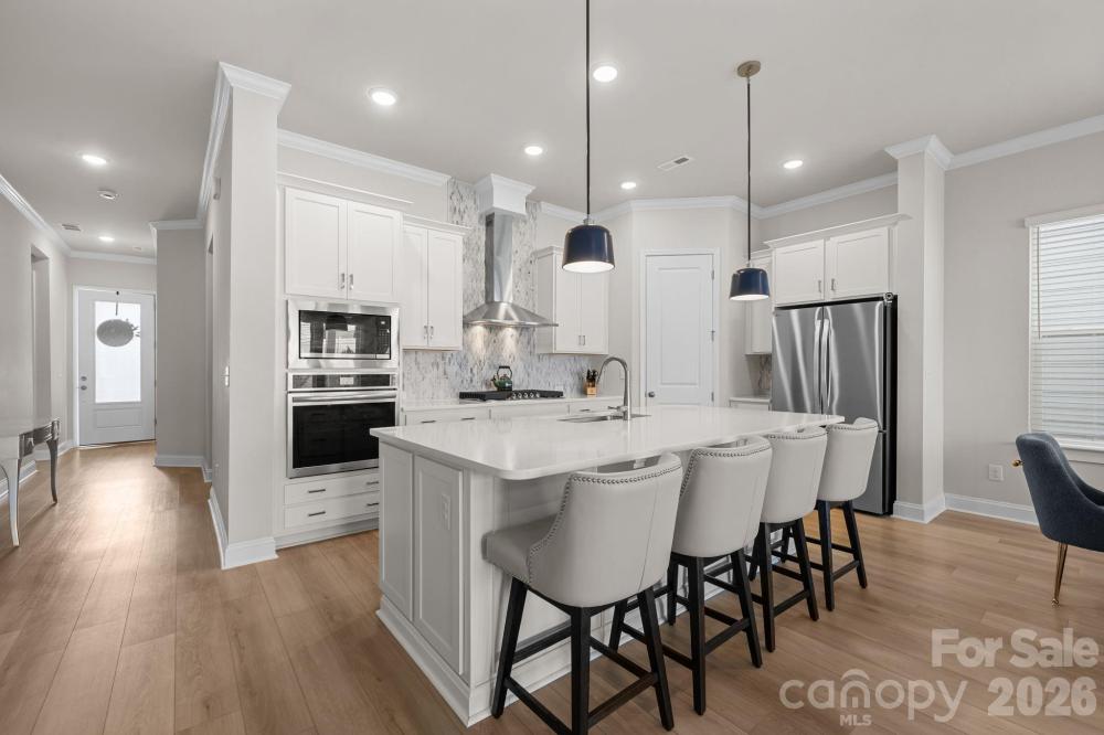 Welcome to this beautifully maintained, better-than-new home (built in 2024) in a premier 55+ active adult community! Flooded with natural sunlight and dressed in crisp, neutral tones inside and out, this 3-bedroom, 2-bathroom open floorplan is truly move-in ready. The heart of the home is a stunning gourmet kitchen boasting a sprawling island, gorgeous custom backsplash, upgraded lighting, and a premium gas range with an exhaust hood. Storage is abundant throughout, highlighted by a massive, cabinet-lined laundry room. Step outside to a charming small garden in your backyard, which features buffered fencing and no direct rear neighbor for ultimate privacy and separation. Embrace a true lock-and-leave lifestyle with yard maintenance included in the HOA, freeing up your schedule to take advantage of the resort-style amenities just a short stroll away! Walk to the luxury pool, three pickleball courts, dog park, and walking trails. With an on-site lifestyle director curating a vibrant social calendar, this home is completely ready for its next chapter - it's more than just a house, it's a lifestyle!