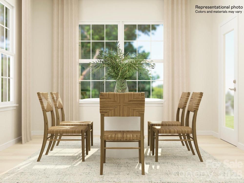 This new Bedford floorplan is a single-story home featuring an open-plan layout that flows seamlessly among the spacious family room, modern kitchen and sun-drenched breakfast room, which provides direct access to a covered patio. Flex space adds versatility. The owner’s suite and the secondary bedrooms are situated at opposite corners of the home for added privacy. Plus, our signature Everything's Included program means you will get a gourmet kitchen with double ovens and cooktop, quartz or granite kitchen countertops, subway tile backsplash, ceramic tile, luxury vinyl plank flooring throughout the home, and a gas fireplace (per plan). Roselyn is a master-planned community offering exclusive ranch homes designed for active adults. This community features an experienced lifestyle team and future resort-style amenities including a swimming pool, clubhouse, pickleball courts, fitness, tennis, bocce and multi-use trails connecting to the Carolina Thread Trail.