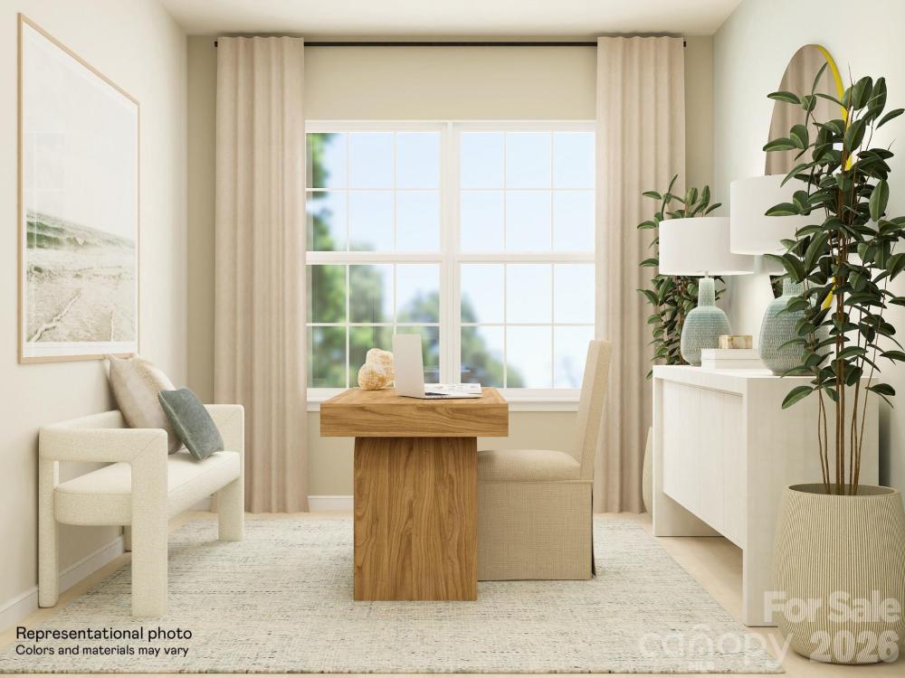This new Bedford floorplan is a single-story home featuring an open-plan layout that flows seamlessly among the spacious family room, modern kitchen and sun-drenched breakfast room, which provides direct access to a covered patio. Flex space adds versatility. The owner’s suite and the secondary bedrooms are situated at opposite corners of the home for added privacy. Plus, our signature Everything's Included program means you will get a gourmet kitchen with double ovens and cooktop, quartz or granite kitchen countertops, subway tile backsplash, ceramic tile, luxury vinyl plank flooring throughout the home, and a gas fireplace (per plan). Roselyn is a master-planned community offering exclusive ranch homes designed for active adults. This community features an experienced lifestyle team and future resort-style amenities including a swimming pool, clubhouse, pickleball courts, fitness, tennis, bocce and multi-use trails connecting to the Carolina Thread Trail.
