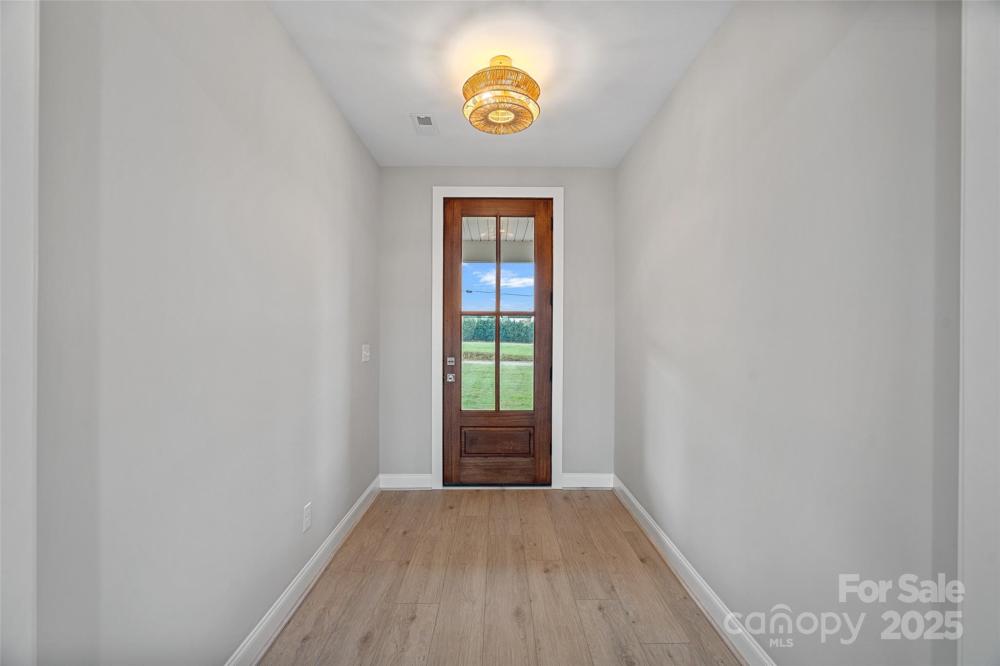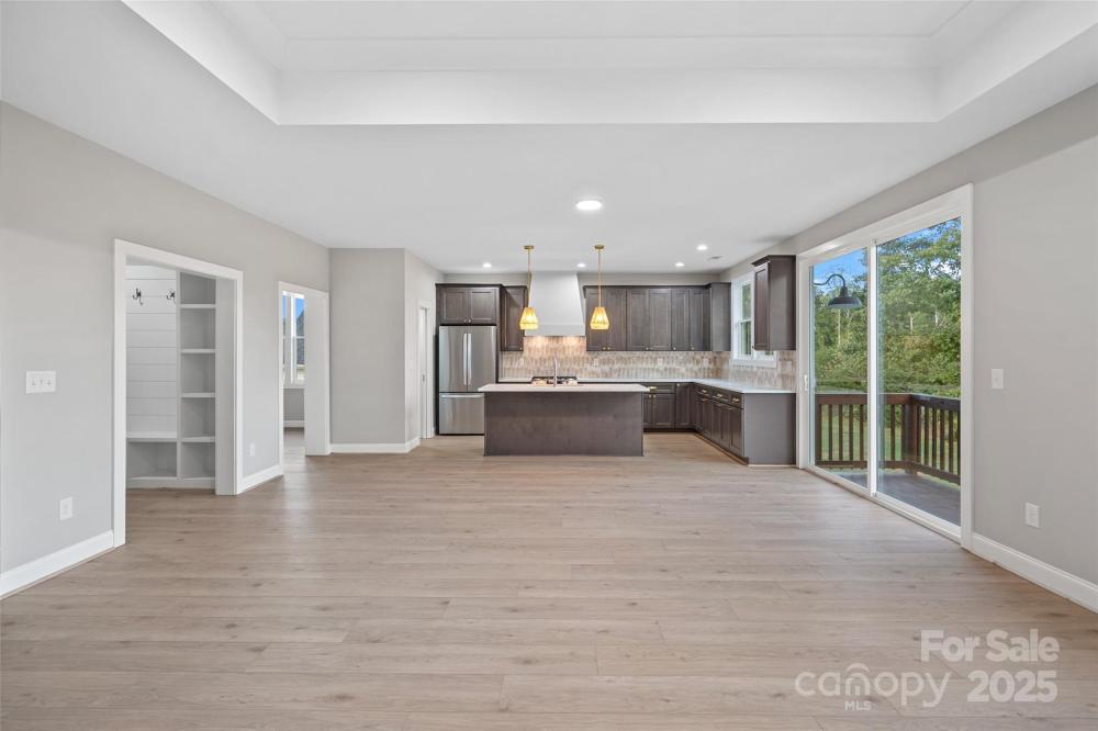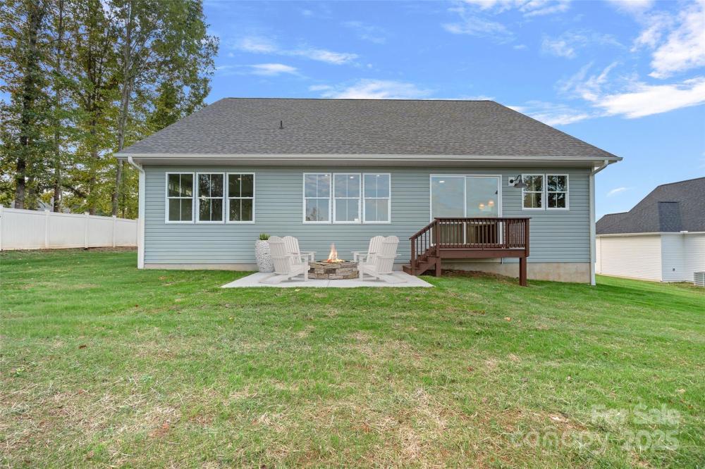 This gorgeous new construction ranch home offers a clean, functional layout with upgraded finishes and No HOA! The home features three bedrooms, two and a half bathrooms, an office, and an oversized entryway that gives the space a wide-open feel from the moment you walk in. The gourmet kitchen includes stainless steel appliances, a gas range with a custom vent hood, a walk-in pantry with a pocket door, and a large island with marble-style counters and brass hardware. An oversized sliding glass door in the sunlit dining area leads to a back patio, perfect for grilling or relaxing. The open living room features a tray ceiling and a gas fireplace with shiplap detail and a wood mantel. The primary suite also includes a tray ceiling, a large tiled shower, a dual vanity, and a spacious custom walk-in closet. Off the two-car garage, the mud and laundry room offer a smart transition space. There's also a large walk-in utility closet for extra storage. Throughout the home, you’ll find upgraded 9-inch LVP flooring and ceiling fans in every bedroom, the office, and the living room. Designed for both comfort and everyday practicality. Perfectly situated on over half an acre on a quiet street in Harmony, NC. Up to $15,000 in down payment assistance available for qualified buyers as well as closing cost incentives!!