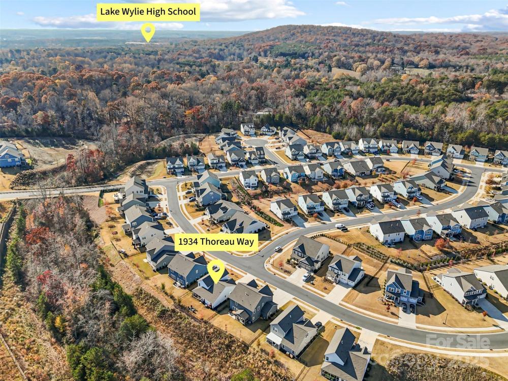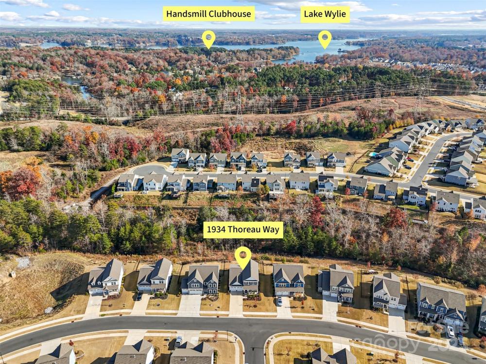 Welcome to 1934 Thoreau Way, where modern style meets wooded tranquility in the gated Manors at Handsmill! This standout home sits on a private, tree-lined lot and features a fenced backyard, large screened in patio, and charming front porch. Inside, the bright open floor plan is anchored by a chef-inspired kitchen with an oversized island and seamless flow into the living and dining areas-perfect for entertaining. The primary bedroom is conveniently located on the main level and offers an oversized shower and spacious walk-in closet. Upstairs, you'll find two additional bedrooms, a full bath, and a versatile flex space ideal for an office, playroom, or media nook. Located in an amenity-rich community with a pool, clubhouse, access to Lake Wylie, and award winning schools. This home blends luxury, convenience, and natural beauty. 1 year home warranty included.
